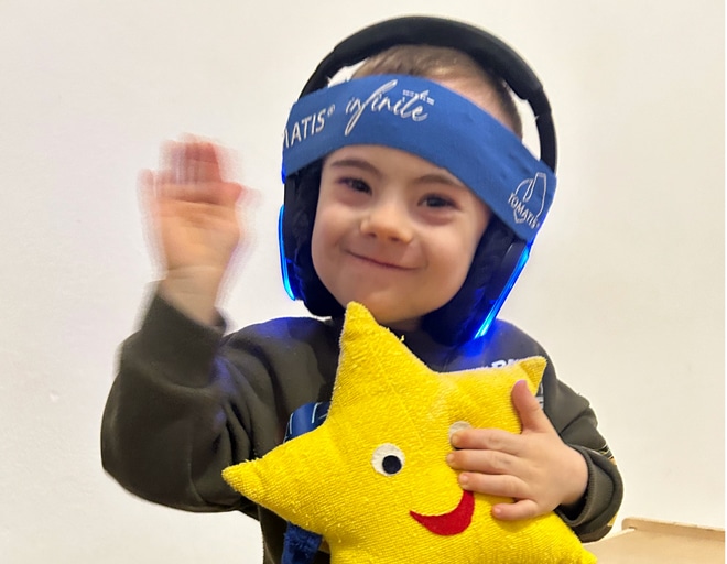 Nach einer Phase der motorischen Fortschritte hat Luca zuerst begonnen, vermehrt zu lautieren und dann zu sprechen! Sowohl Wortschatz als auch Aussprache verbessern sich kontinuierlich. Luca absolviert ein Hör- und Wahrnehmungstraining. Darüber hinaus reagiert der 4-Jährige überaus positiv auf sensorische Integration im Dialog. Sensorische Integration ist die Grundvoraussetzung für Handlungs- und Lernfähigkeit, emotionales Gleichgewicht und Selbstbewusstsein. Dabei stehen achtsame, ressourcenorientierte Begegnungen im Vordergrund. Der Ansatz ist klar prozessorientiert und wird auf Lucas Bedürfnisse angepasst.